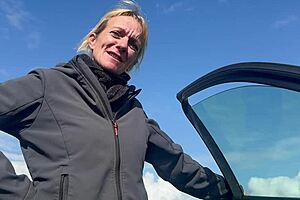 german big tits hitchhiker with glasses picked up fucked in car outdoors