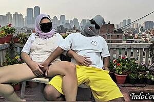 i catch step sis on balcony, she begs me to grope her hairy pussy outdoor! 😏🌳💦