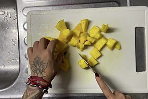 Haar stiefvader neukt zijn gretige stiefdochter recht in onze keuken.