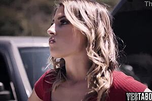 stranded blonde milf repays stranger with outdoor fuck