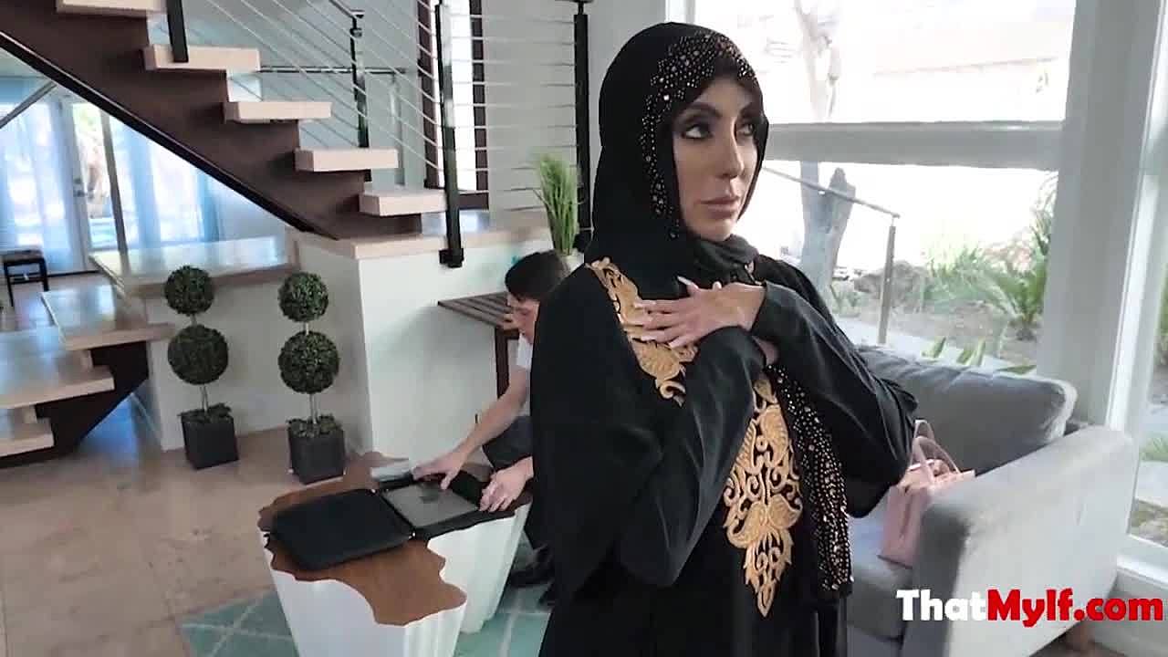 害羞的穆斯林熟女戴头巾勾引水管工