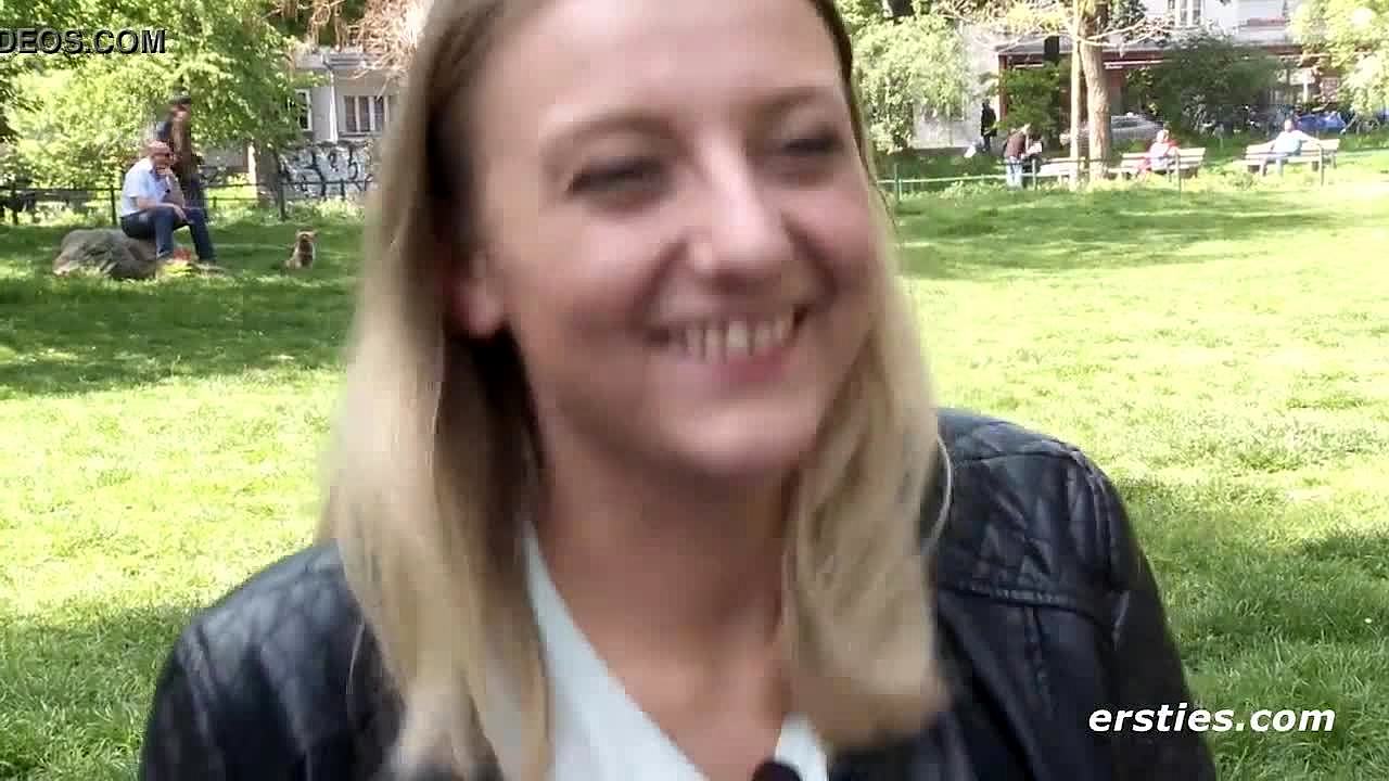 Hey, watch this British 18-year-old tease and suck off a chubby older stranger with big natural tits and long hair