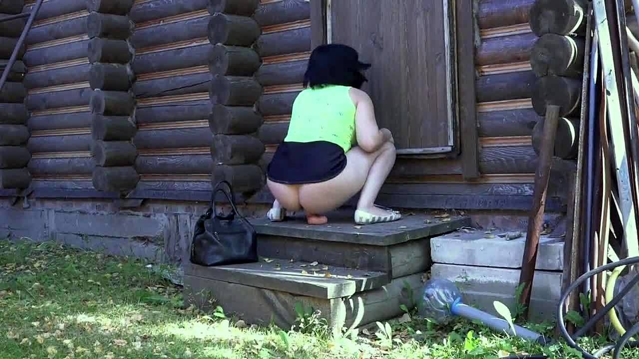 My mother-in-law flashes her wet pussy outdoors 😏