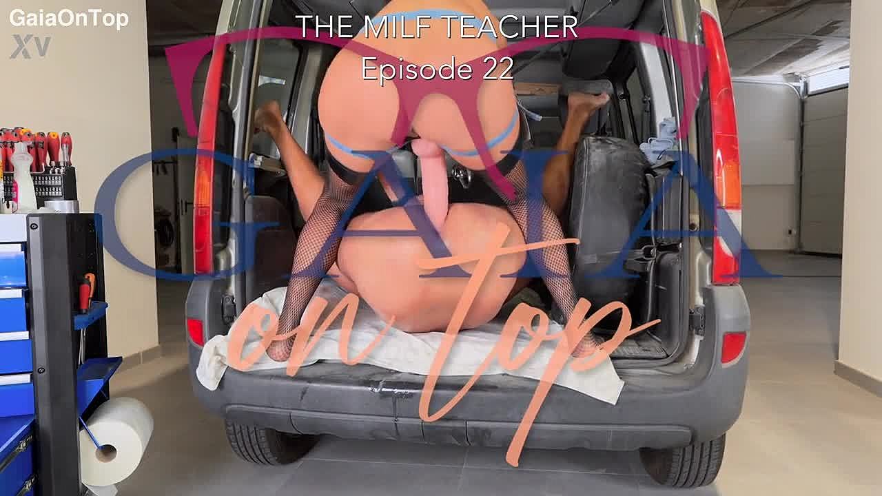 slutty teacher in stockings and heels gets anal fucked hard by her student, riding in fishnets with deep penetration