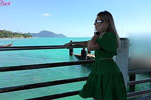 milf struts public walk with remote vibe buzzing her soaked panties 😏🔥💦